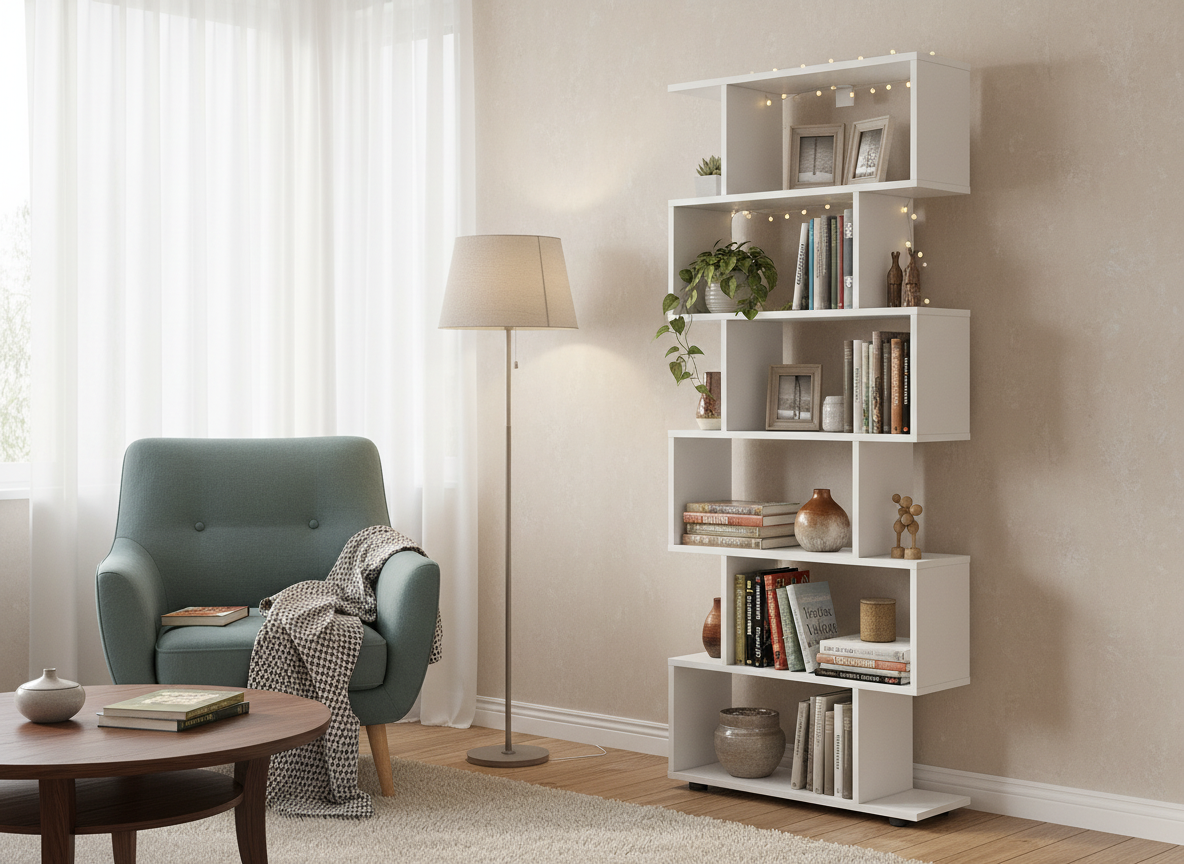 Модульная система "Токио" Стеллаж (змейка) Белый текстурный